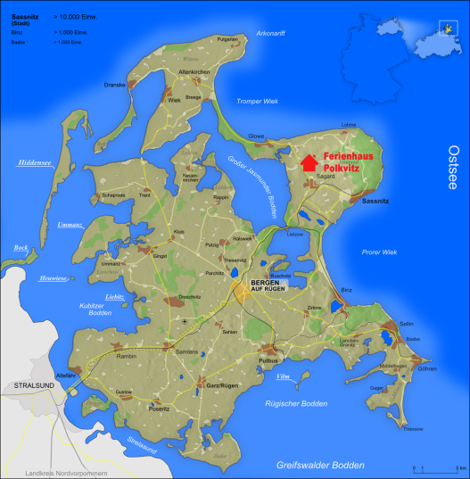 Auf einem 2500 m² großen abgeschlossenem Grundstück liegt unser Ferienhaus mit 145 m² Wohnfläche in ruhiger Einzellage, umgeben von Feldern und Wiesen, im Nordosten Rügens auf der Halbinsel Jasmund, am Rande des Nationalparks. Zu den Sandstränden der Ostsee sind es ca. 5 km und der Jasmunder Bodden ist nur etwa 2 km entfernt. Die nächstgelegene Stadt ist Sagard, bis zu den dort zahlreich vorhandenen Restaurants, den umfangreichen Einkaufsmöglichkeiten (Aldi, Edeka, Apotheke, Bäcker, Kaufhaus), den Sportplätzen, der Jasmund Therme u.v.m. sind es nur 1 km. Dieses Ferienhaus ist besonders geeignet für Erholungssuchende, die abseits des Trubels der Ostseebäder entspannen möchten. Für einen Ausflug in der näheren Umgebung jedoch haben wir einige Tipps wie Karls Erlebnishof in Zirkow, das Dinosaurierland Rügen bei Glowe, das Nationalpark Zentrum Königsstuhl mit zahlreichen Wanderwegen entlang der Kreidefelsen, das Kreidemuseum in Gummanz, der Baumwipfelpfad bei Prora, der Rügenpark Gingst und vieles mehr. Aufgrund der geringen Entfernungen und des dichten Radwegenetzes lädt dieser Teil Rügens zu vielen schönen Fahrradtouren ein. Einen Besuch wert sind auch die klassischen Seebäder Binz und Sellin und eine Fahrt mit der historischen Schmalspurbahn, dem „Rasenden Roland“, ist empfehlenswert. Urlauber während der Sommermonate sollten einen Besuch der Störtebeker-Festspiele im nahen Ralswiek nicht verpassen. Für Surfer und Segler gibt es einen Hafen und eine Surf- und Segelschule im nahe gelegenen Glowe.
